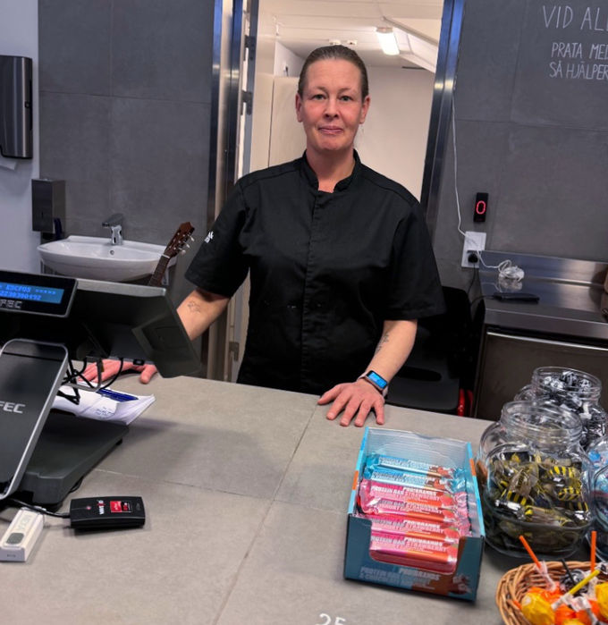 "Jag försöker vara social med elever och ha en öppen dialog så de känner sig välkomna. Den största utmaningen är att hålla ett bra utbud, speciellt när det är så många som går här. Men vi känner oss nöjda, vi har något för de flesta. Vi försöker ta hänsyn till elevers tycke och smak när vi utökar menyn, och det är alltid kul att lägga till en ny kaka, men någonstans måste vi också dra gränsen så att det inte blir för mycket produkter".